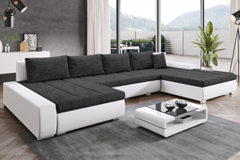 Ak hľadáte výnimočnú sedačku na zariadenie štýlovej obývačky, určite Vás zaujme účková sedačka TOBIAS. Je navrhnutá v módnych trendových líniách a poskytne veľkú plochu na oddych či leňošenie. Aj vo veľkom priestore vynikne a stane sa dominantným prvkom celého interiéru. Sedačka ponúka módny trend nízkch opierok chrbta s vankúšmi. Lesklé nožičky a kombinácia materiálu zvýrazňuje jej celkový vzhľad.Sedacia časť je vyrobená v kombinácii vlnovcovej pružiny a PUR peny typu T30. Je čalúnená kombináciou eko-kože Madryt (spodná časť) a látky Berlin. Nohy sedačky sú kovové-pochrómované, ich výška je 5 cm.Sedačka ponúka možnosť rozkladu, ktorý využíva mechanizmus DELFIN. Vďaka nemu si jednoduchým spôsobom rýchlo vytvoríte spaciu plochu 147 x 376 cm, vhodnú na príležitostné spanie. Súčasťou je aj praktický úložný priestor, ktorý oceníte v každej domácnosti.Farebné prevedenie: Berlin 06/Madryt 120 v kombinácii farieb sivá/biela. Prevedenie rohu je pravé. Ponúkame aj sedačku TOBIAS v ľavom prevedení rohu.Rozmery (š/v/h): 400 x 85 x 180/210 cm. Hĺbka sedu 62 cm, výška sedu 42 cm, výška bez podušiek 80 cm.V našej ponuke nájdete viacero farebných prevedení tejto dominantnej a modernej sedačky.