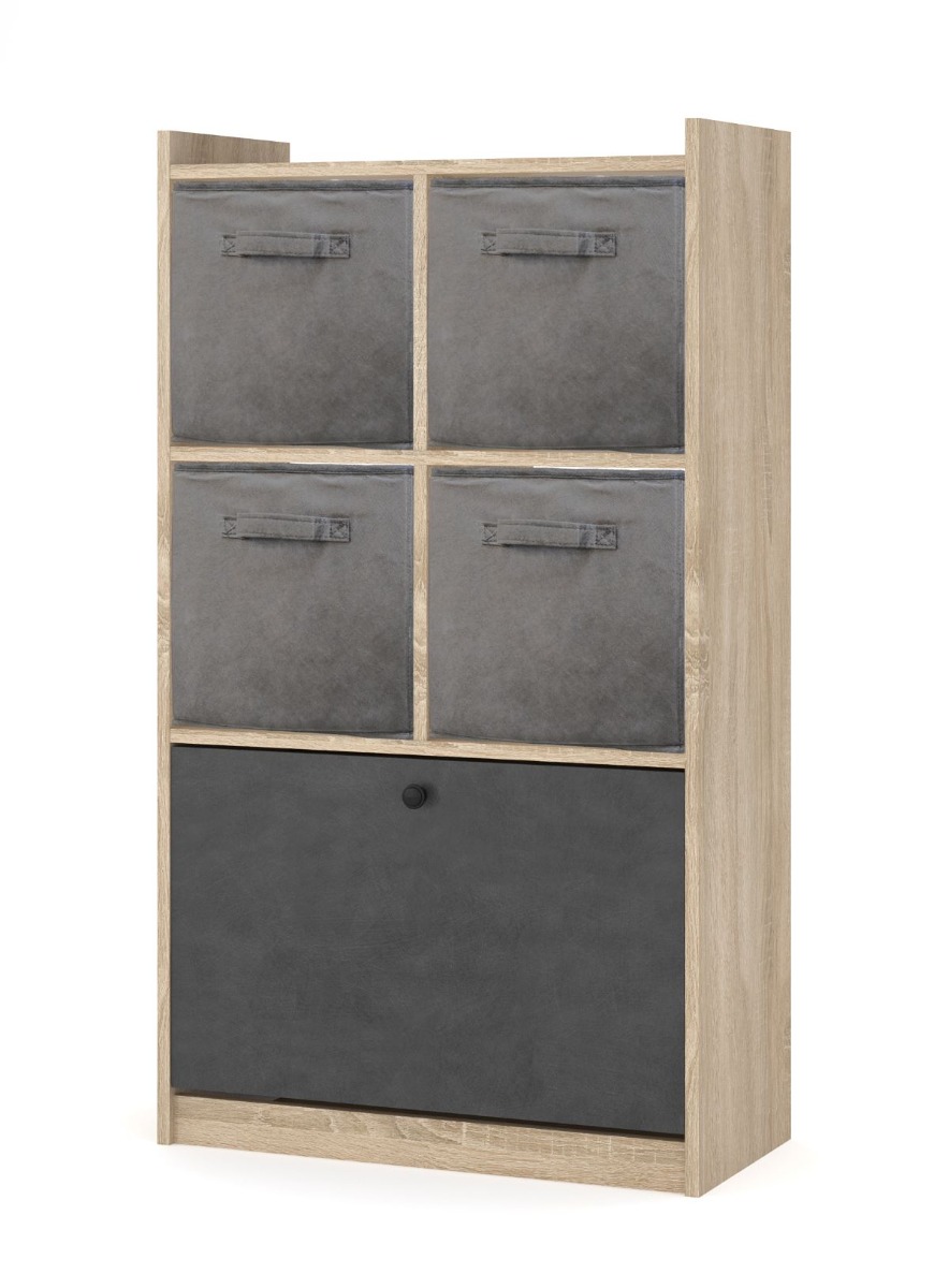 TONY 6 je zaujímavý jednodverový výklopný botník s regálom, vďaka ktorému získate dostatok úložného priestoru pre všetky Vaše potrebné veci.Regálik je vyplnený praktickými organizérmi v šedej látke, zahrnuté v cene botníka. Botník je vyrobený z kvalitnej LTD dosky nenáročnej na udržiavanie.Rozmery (ŠxVxH): 67 x 117 x 31 cm.Farebné prevedenie dub sonoma- šedý.Dodávame v demonte.