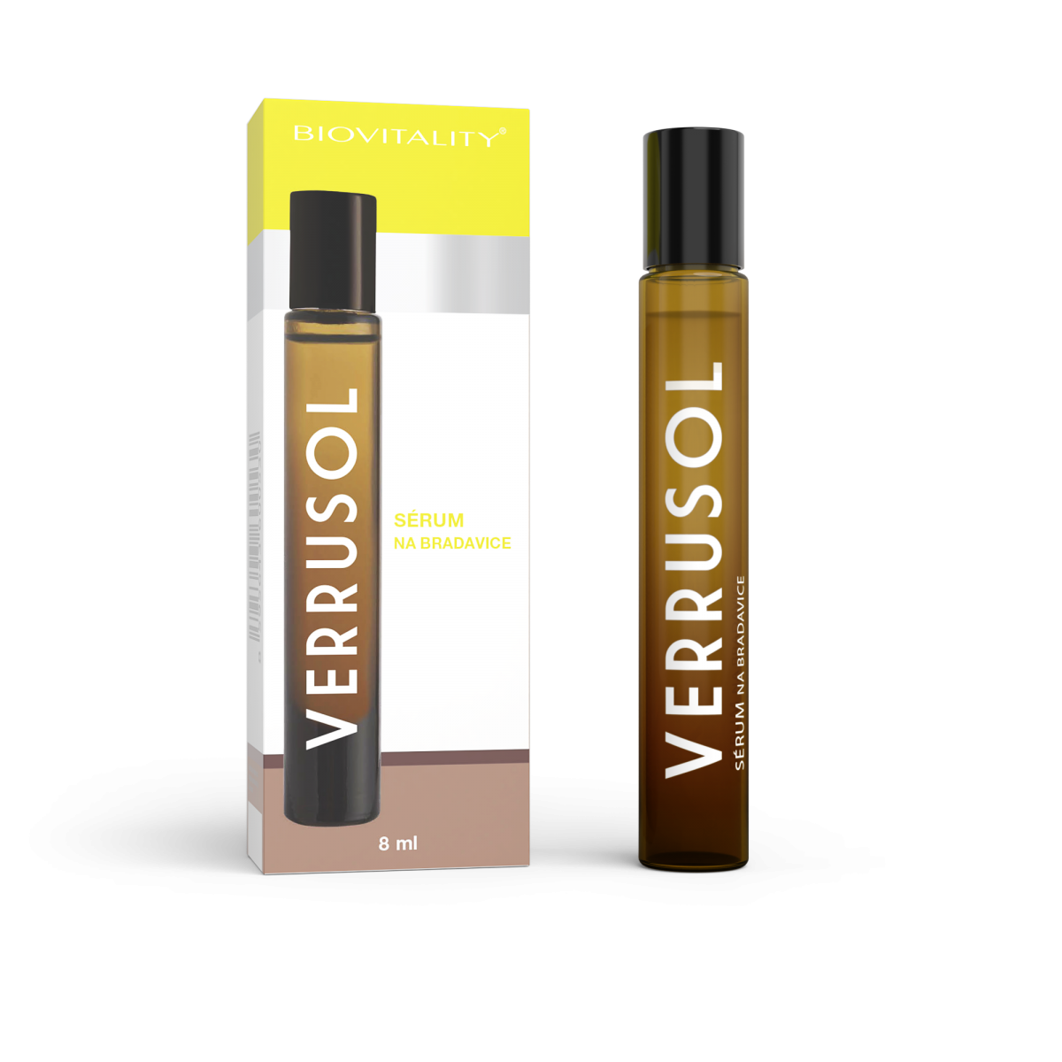 Verrusol – Sérum na zhrubnuté kožu, bradavice.Bylinný prípravok s vysokým obsahom antimikrobiálnych rastlinných olejov a silíc na zrohovatenú pokožku. Výťažky rastlín sú schopné tento problém riešiť. Bradavice (nezhubné nádorčeky pokožky) môžu výrazne znižovať kvalitu života. Použitie: Bylinné sérum aplikujte niekoľkokrát denne. Používajte až do úplného vymiznutia problému. Ingredients (INCI): Aqua, Alcohol Denat., PEG-12 Dimethicone, Polysorbate 80, Melaleuca alternifolia Leaf Oil, Salix Alba Bark Extrakt, Betula Pendula Bark Extrakt, Chelidonium Majus Extract, Sanguinaria Canadensis Rhizome / Root Extract, Panthenol, Leptospermum scoparium Branch / Leaf Oil, Limonene, Linalool Skladovanie: Uchovávajte v suchu pri izbovej teplote. Neskladovať na priamom slnku. Chrániť pred mrazom! Všeobecné upozornenia: Nepoužívajte pri známej precitlivenosti na niektorú zložku prípravku. Dermatologicky testované. Originálna receptúra.
