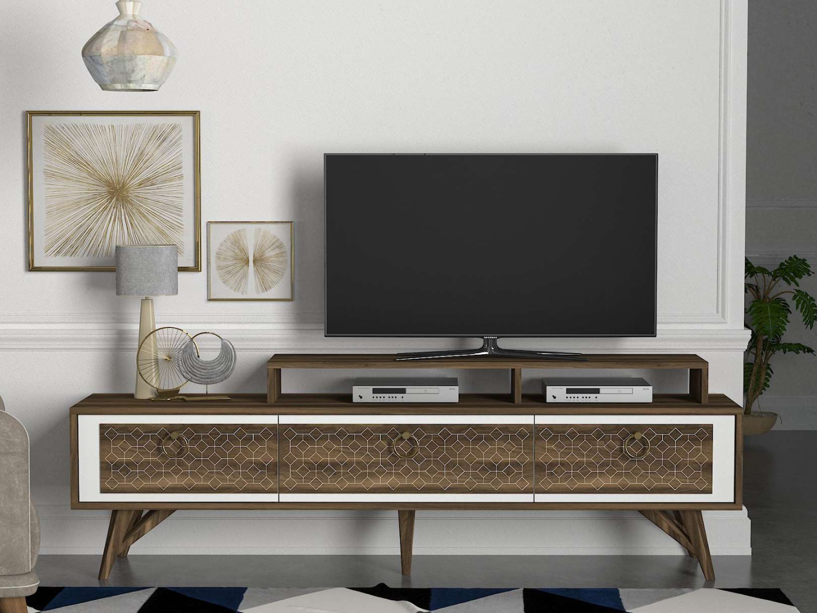 Predstavujeme TORO, TV stolík, ktorý prináša do vašej obývačky eleganciu a moderný dizajn s orientálnym nádychom. Tento štýlový nábytok v kombinácii bielej a orechovej farby je navrhnutý tak, aby poskytoval praktické a estetické riešenie pre vaše multimediálne zariadenia a ďalšie potreby.Detailné špecifikácieTyp tovaru: TV stolíkMateriál: Kvalitná LTD s hrúbkou materiálu 18 mm, zaisťujúca odolnosť a dlhú životnosť.Rozmery: 62.5 x 180 x 30 cm, ideálny pre moderné obývacie priestory.Farba: Elegantná kombinácia bielej a orechovej, ktorá dodáva priestoru moderný a príjemný vzhľad.Vybavenie: Regálka a 3 skrinky, poskytujúce dostatok úložného priestoru pre elektroniku, knihy alebo dekorácie.Štýl: Orientálny, ktorý prináša do vášho interiéru exotický a upokojujúci prvok.Dodatočné informácie: Produkt je dodávaný v demontovanom stave, čo uľahčuje transport a montáž.TV stolík TORO je ideálnou voľbou pre tých, ktorí hľadajú moderný a funkčný nábytok s elegantným a originálnym vzhľadom. Jeho kombinácia bielej a orechovej farby a orientálny štýl prinášajú do vášho domova sviežosť a moderný štýl, zatiaľ čo poskytujú dostatok úložného priestoru pre všetky vaše potreby.