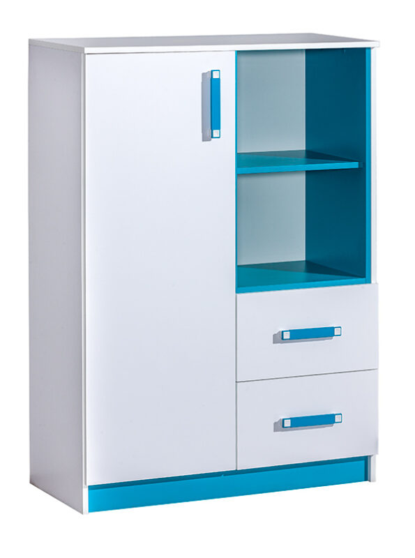 Detská komoda TRAFIC je moderným a dizajnovým kúskom zo sektoru TRAFIC. Aj vďaka nej si poskladáte študentskú izbu pre vaše deti podľa predstáv.Komoda je jednodverová. Vo vnútri sa nachádzajú police. Skriňa tiež disponuje praktickými zásuvkami a dvomi otvorenými policami. Farebné prevedenie je v kontraste biela, tyrkysová. Pri výrobe boli použité kvalitné LTD dosky.Detská izba Trafic vás zaujme nielen svojím vzhľadom ale aj funkčnosťou. Je zložená z viacerých zaujímavých komponentov. Detská izba bola navrhnutá tak, že každý komponent z detskej izby má dostatok úložného priestoru na uloženie vašich vecí. Isto poteší vašich teenagerov svojim dizajnom a prevedením.Dodávame v demontovanom stave.