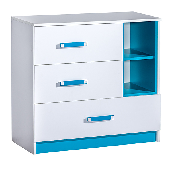 Detská komoda TRAFIC je moderným a dizajnovým kúskom zo sektoru TRAFIC. Aj vďaka nej si poskladáte študentskú izbu pre vaše deti podľa predstáv. Komoda disponuje praktickými zásuvkami a dvomi otvorenými policami. Farebné prevedenie je v kontraste biela, tyrkysová. Pri výrobe boli použité kvalitné LTD dosky.Detská izba Trafic vás zaujme nielen svojím vzhľadom ale aj funkčnosťou. Je zložená z viacerých zaujímavých komponentov. Detská izba bola navrhnutá tak, že každý komponent z detskej izby má dostatok úložného priestoru na uloženie vašich vecí. Isto poteší vašich teenagerov svojim dizajnom a prevedením.Dodávame v demontovanom stave.
