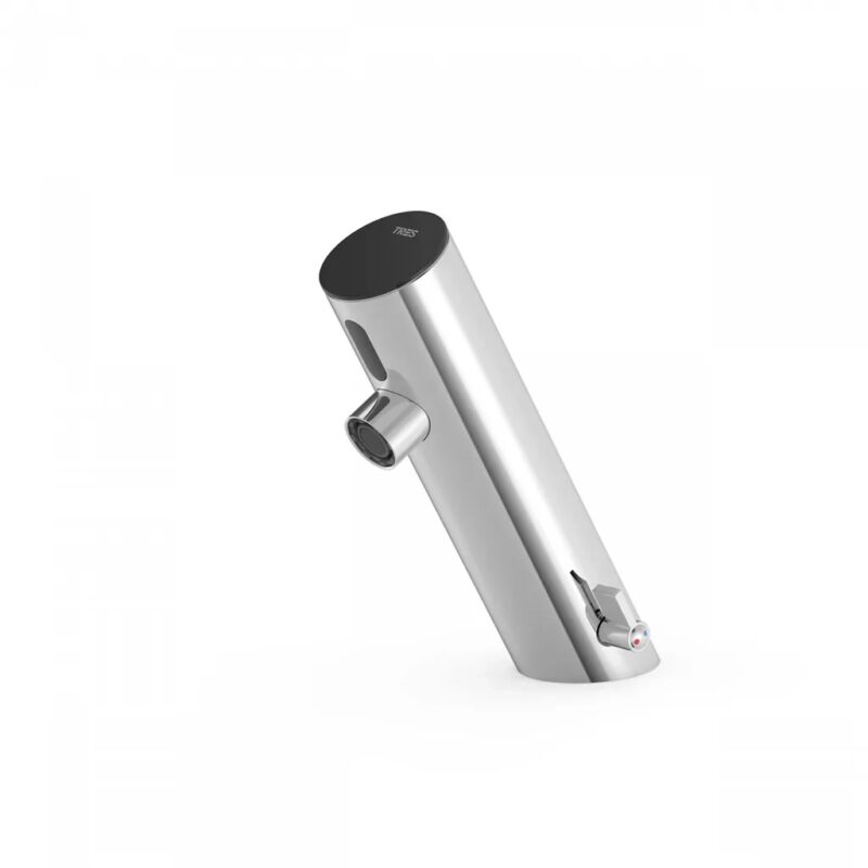 LaVilla bezdotyková batéria BASIC TRES zmiešavací typ 301 Možnosť napájania: 230V adaptér, 6V batéria (blok 4×1,5V AA alkalické 2700 – 2900mAh), kombinácia oboch Balenie obsahuje: – elektronickú batériu s pripojovacími nerezovými trubičkami s maticou R 3/8″ G – sadu montážnych skrutiek a hmoždiniek – napájací adaptér AC 230V 50Hz / DC 6V – batériový blok pre 4ks AA batérií 1,5V – montážnu konzolu Elektronická batéria s infračerveným snímačom je moderným výrobkom nielen pre verejné, ale aj súkromné priestory. Výrazne tak prispieva k nežiaducim kontaktom s povrchom batérie. Armatúra má možnosť nastavenia teploty vytekajúcej vody ovládacou páčkou na boku armatúry. Vlastnosti: – infračervený snímač – bivalentný spínací ventil pre nízku spotrebu energie udrží batérie v prevádzke cca 12 mesiacov pri počte 150 zopnutí denne. – ekonomický perlátor s nízkym prietokom vody – jednoduché nastavenie detekčnej zóny (10 – 35 cm) pomocou magnetu (nepotrebuje diaľkové ovládanie) – možnosť napájania z elektrickej siete prostredníctvom adaptéra do zásuvky – možnosť napájania čisto batériovou prevádzkou ( batérie typ AA, 4 x 1,5V nie sú súčasťou dodávky) – možnosť kombinovaného napájania zo siete aj na batérie (v tomto prípade slúžia batérie pre záložnú prevádzku pri výpadku napájania zo siete) – pracovný tlak 0,5 – 7 bar – príkon AC: menej ako 5W, DC: menej ako 0,5mW – reakčná doba menšia ako 1 sec – prevádzková teplota 1 – 50st.C – bezpečnostná funkcia STOP uzavrie ventil na prívode vody po 60 sec. prevádzky Výrobok vyhovuje požiadavkám smernice UNE-EN15091 a RoHS(GT) Ean: 8429546518442