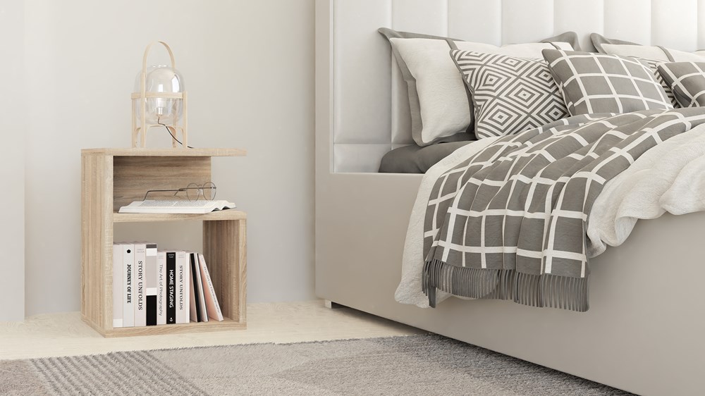 Nočné stolíky TRINITY sú nevyhnutným prvkom každej spálne. Okuliare, obľúbená kniha či telefón musia byť vždy po ruke. Preto sú naše nočné stolíky dokonalým riešením. Univerzálny vzhľad splní očakávania každého, kto oceňuje spojenie jednoduchosti a elegancie.Univerzálne prevedenie s možnosťou montáže ľavej aj pravej strany.Korpus – laminovaná drevotrieska. Hrany – povrchová úprava ABS plastom (vyznačuje sa vysokou mechanickou a chemickou pevnosťou)Farebné prevedenie: dub sonomaROZMERY:Hĺbka: 30 cmŠírka: 30 cmVýška: 40 cmDodávame v demonte.