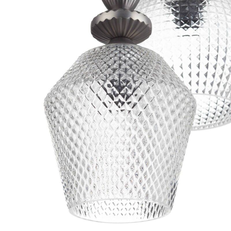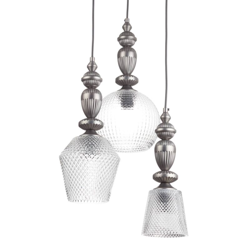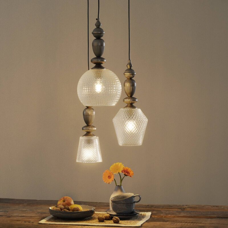 Závesné svietidlo Talisa – nezvyčajný dekoratívny prvok a efektívny zdroj svetla v jednom Dizajn tohto modelu sa šikovne pohráva s tvarmi a svetelnými efektmi. Trojlampa závesného svietidla Talisa kombinuje tri rôzne tvarované tienidlá z umne brúseného skla, pričom každé tienidlo pripomína vzácnu krištáľovú vázu. Cez fazety sa svetlo nekonečne odráža, láme a zároveň znásobuje. Lampa Talisa tak poskytuje účinnú hru svetla a dobre osvetľuje aj priestranné miestnosti. So závesnou lampou Talisa možno vytvoriť originálne vintage a nostalgické koncepty. K dispozícii sú aj doplnkové stolové, nástenné a stojacie lampy v rovnako hravom vzhľade s tienidlami z priehľadného skla alebo kovu. Tieto závesné lampy sú nielen ideálnym osvetlením obývacej izby, ale dobre vyzerajú aj v kuchyni alebo priestrannej chodbe.