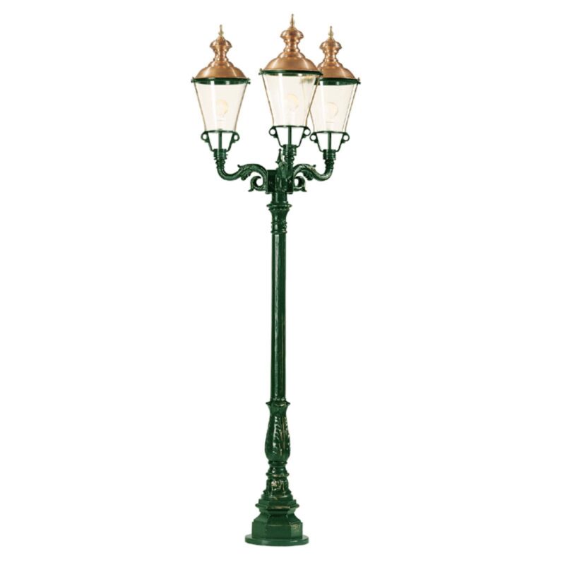 Atraktívny svietnik Parijs s medenými kapotamiTento svietnik presvedčí svojou majestátnou výškou, dizajnom s tromi lampami a klasickou konštrukciou s atraktívnymi, špicatými medenými kapotami. Toto vysokokvalitné svietidlo nielenže prispieva k reprezentatívnemu vzhľadu mnohých záhradných plôch, ale ich aj účinne osvetľuje. Predovšetkým klasický dizajn je vždy krásny na pohľad, vytvára atmosféru a predovšetkým sprostredkúva bezpečnosť prostredníctvom vhodného osvetlenia. poznámka k inštalácii: Svietidlo sa pripája priamo do zásuvky. Odporúčame, aby inštaláciu vykonal elektrikár. Výrobca na tento účel odporúča použiť gumové káble