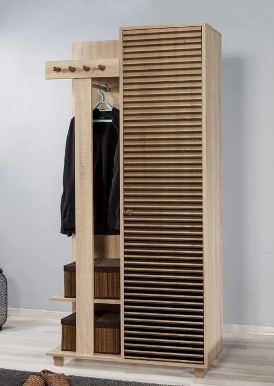 Už vás nebaví chodiť domov do preplnenej chodby? Rozlúčte sa s chaosom a pozdravte organizáciu s naším úžasným vešiakom do predsiene! Tento kus nábytku nie je len kusom nábytku, je to stelesnenie štýlu a funkčnosti. Premeňte svoj priestorPredstavte si, že vojdete do svojho domu a privíta vás krásne usporiadaná chodba. Náš vešiak do predsiene je navrhnutý tak, aby nielen udržal váš priestor uprataný, ale tiež pozdvihol estetiku vášho domova. Vďaka modernému dizajnu a elegantnej farbe duba Sonoma okamžite dodá každému vstupu nádych sofistikovanosti.Maximalizujte úložný priestorS niekoľkými policami a ďalšími možnosťami úložného priestoru ponúka tento vešiak do predsiene dostatok priestoru na uloženie topánok, tašiek. Viacúčelový závesný stojan je ideálny pre kabáty, šály a čiapky, takže všetko budete mať na dosah ruky a úhľadne usporiadané.Kvalitné remeselné spracovanie Tento vešiak do predsiene je vyrobený zo 100% drevotriesky s mela. Hrúbka 18 mm zaisťuje odolnosť a UV povlak chráni pred opotrebením. Plastové nohy poskytujú stabilitu a oporu, vďaka čomu bude kúsok spoľahlivým kusom nábytku po mnoho rokov. povlakŠírka: 90 cm, Výška: 192 cm, Hĺbka: 36 cmŠírka police: 45 cm, Výška police: 29 cmVýška nôh: 10 cmFarba: Dub Sonoma Ombré, PruhovanýNenechajte si pokaziť náladu preplnenú chodbou. Investujte do nášho stojana do predsiene a premeňte svoj priestor na štýlovú a organizovanú oázu. Objednajte si ešte dnes a zažite, aký rozdiel to môže vo vašej domácnosti urobiť!