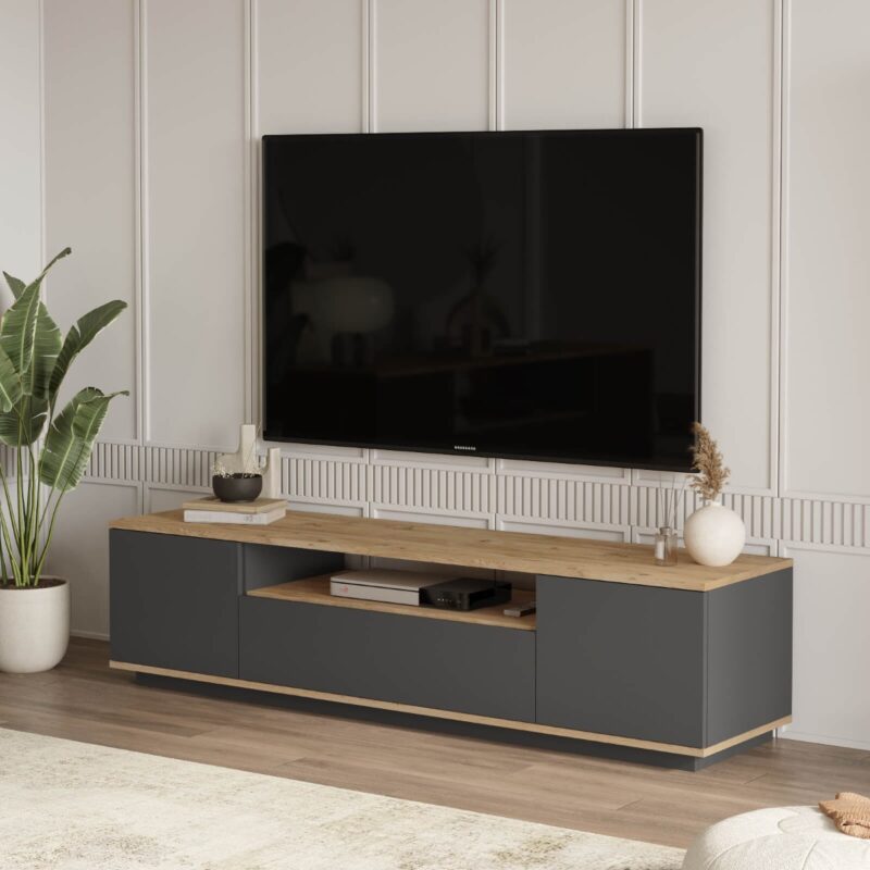 TV skrinka FREY 7, farba šedá + borovica