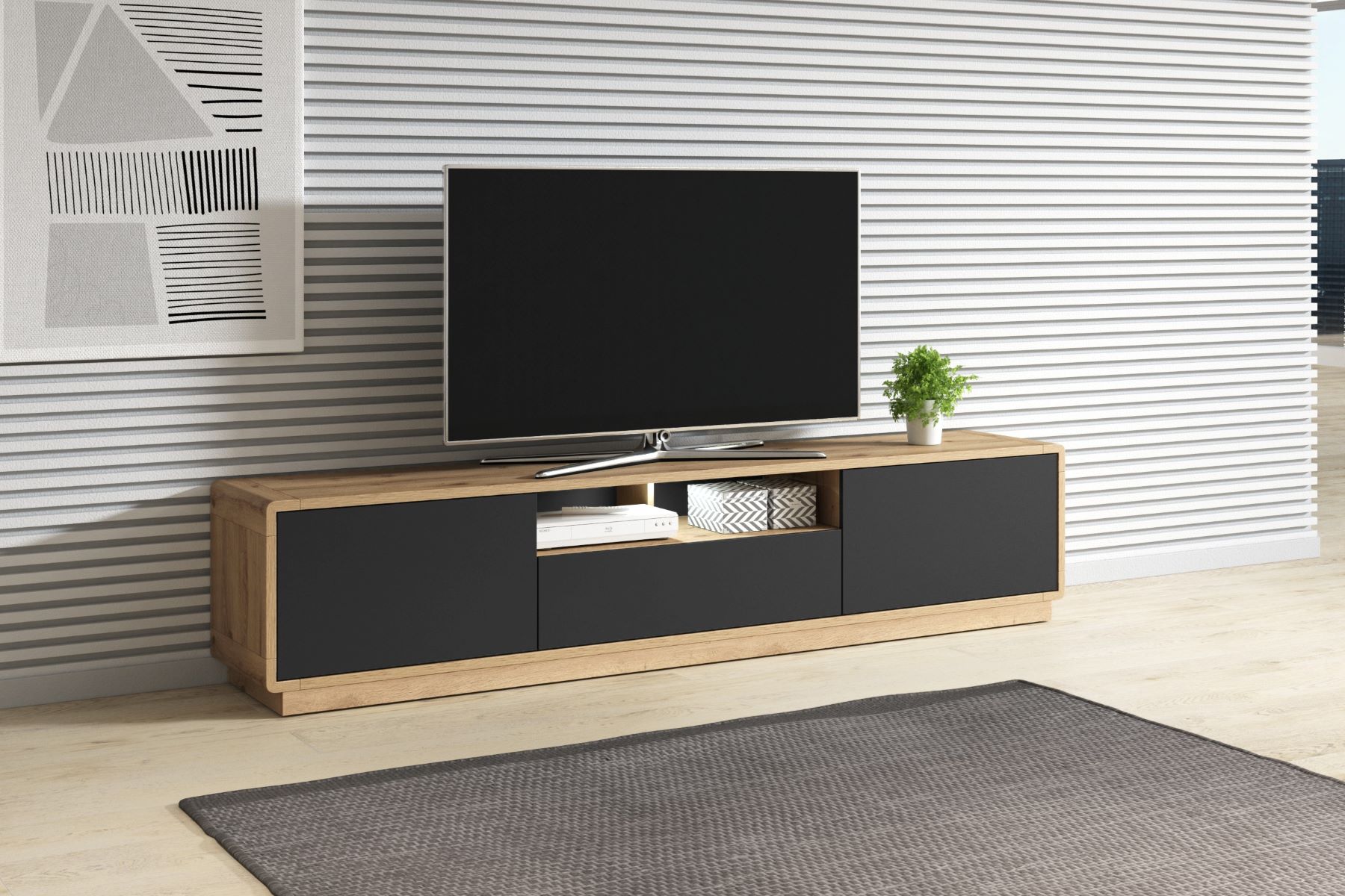 Elegantný sektorový nábytok ARTON je vhodný do moderných dizajnových priestorov. Vyznačuje sa kontrastnými farbami, zaoblenými hranami a pevnou konštrukciou. Sektor ARTON je vyrobený z kvalitnej certifikovanej drevotriesky, ktorá je odolná voči škrabancom a UV žiareniu. Do výklenkov je možnosť doobjednať si LED osvetlenie. Tv stolík ARTON 40 disponuje pevnou konštrukciou a splní všetky očakávania aj náročnejších užívateľov. Stolík má dvoje dvierka za ktorými sa nachádza polica, jednu zásuvku a policu.Materiál: LTD, zaoblené rohy s MDFFarebné prevedenie: taurus/čierny matRozmer: (ŠxVxH) 200 x 44 x 40 cmNábytok je dodávaný v demonte.