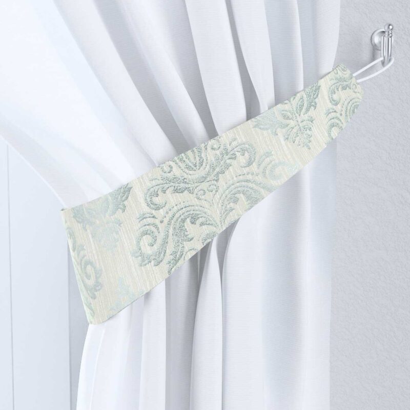 Úchyty Victoria slúžia na upnutie závesov. Sú štýlovým a elegantným doplnkom Vašich okenných dekorácií.Ak počas dňa potrebujete vpustiť do izby viac svetla, pomôžu Vám práve dekoračné, textilné úchyty k závesom.Rozmer: šírka 12cm x dĺžka 70cm.