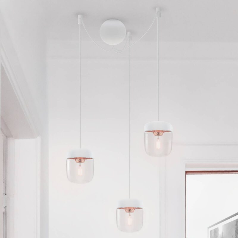 UMAGE Acorn závesná lampa 3-pl. biela/meď