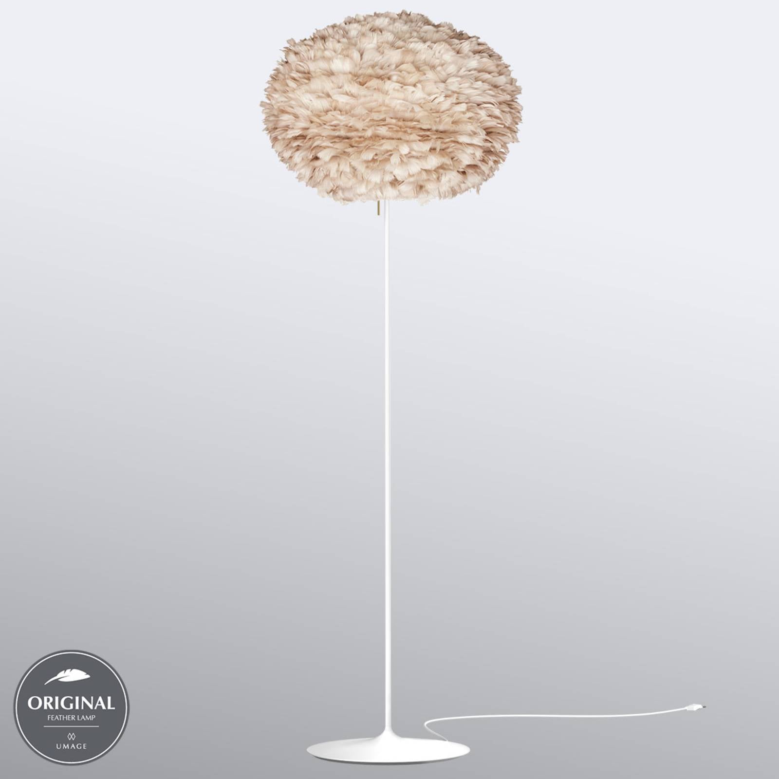 Fascinujúca dizajnová stojacia lampa Eos large: tienidlo v svetlohnedej farbe Tienidlo veľkej stojacej lampy Eos ponúka nezvyčajný pohľad: kamkoľvek sa pozriete, vidíte svetlohnedé husacie perie – je ich približne 4 500. Dodávajú tienidlu veľmi prirodzený nádych a vytvárajú fantastickú svetelnú atmosféru. Tým sa vytvorí také osvetlenie, aké je žiaduce napríklad v obývacej izbe. Veľkú stojaciu lampu Eos dopĺňa biely lakovaný rám, ktorý obohacuje celkový vzhľad o jednoduchú eleganciu. Je vybavený ozdobným mosadzným spínačom. Návrh odtieňa: Søren Ravn Christensen Dizajn rámu: Anders Klem Dvaja dánski dizajnéri Christensen a Klem vyvinuli komponenty stojacej lampy Eos pre výrobcu osvetlenia UMAGE by Vita Copenhagen, ktorý vytvára vysokokvalitné výrobky s ohľadom na ekológiu a zameriava sa na ďalší rozvoj škandinávskeho dizajnu. – Nepoužíva sa perie zo živých zvierat. – V prípade potreby možno tienidlo vyčistiť fénom.