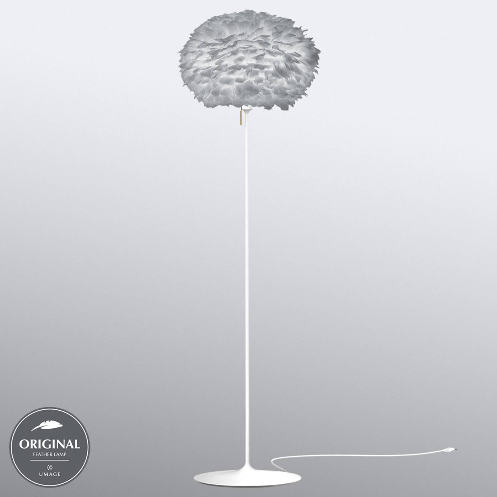 Stojacia lampa Eos medium so svetlosivým tienidlom z husieho peria Pri pohľade na stredne veľkú stojacu lampu Eos sa najprv chcete dotknúť tienidla, aby ste pocítili nadýchanosť, ktorú dodáva približne 1 800 pravých husacích pier. Mäkkosť sa však nevzťahuje len na pocit z materiálu, ale aj na vyžarované svetlo, ktoré jemne osvetľuje okolie. Tienidlo, ktoré pochádza z dielne Sørena Ravna Christensena, kreatívneho vývojára a spoluzakladateľa dánskej spoločnosti UMAGE, je doplnené elegantným bielym rámom svietidla od dizajnéra Andersa Klema a tvorí strednú stojaciu lampu Eos, ktorá obohatí každé bývanie svojím dekoratívnym vzhľadom aj atmosférickým svetlom. Výrobca osvetlenia UMAGE z Dánska si dal za cieľ ďalej rozvíjať obľúbený škandinávsky dizajn, spájať krásu, jednoduchosť a funkčnosť a dopĺňať ich starostlivým remeselným spracovaním, aby vznikli výrobky s trvalou hodnotou. – Nepoužíva sa perie zo živých zvierat. – Keď je tienidlo špinavé, jednoducho ho vyčistite fénom.