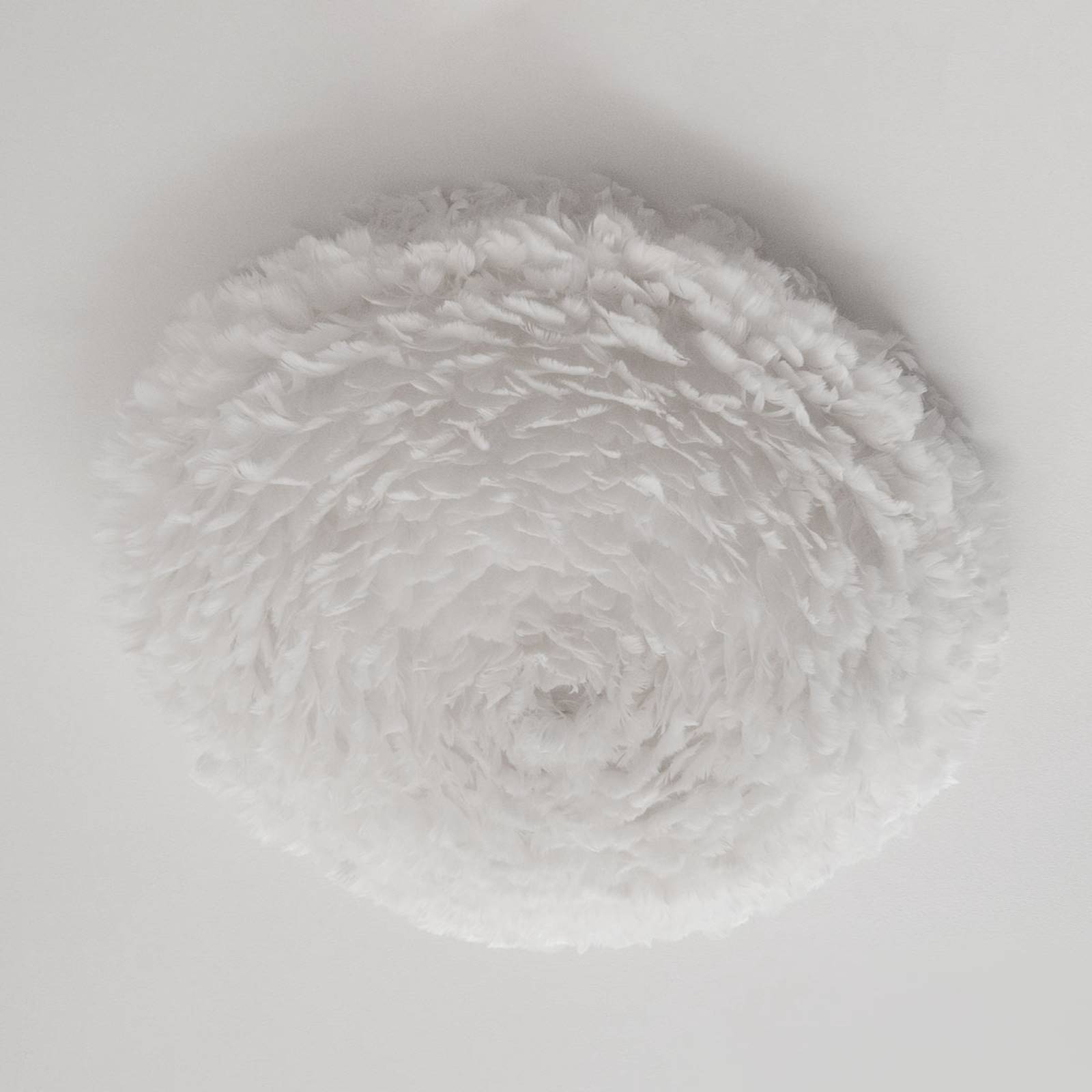 Pozoruhodný tienidlo na lampu v bielom operení – nástenná lampa Eos až veľká Perie formuje nielen vzhľad veľkého veľkého nástenného svetla Eos, ale aj vyžarované svetlo. Toto nadobúda silne tlmený a jemný charakter. Výrobca svietidiel UMAGE a jeho hnacia sila, Søren Ravn Christensen, sledujú cieľ implementovať škandinávsky dizajn do svietidiel s prírodným charakterom a ďalej ho propagovať. To je zrejmé aj pri Eos. Jednoduchý Basis v podobe jednofarebného disku, ktorý nadväzuje na základnú myšlienku škandinávskeho štýlu, sa vďaka nepretržitému lemovaniu so skutočným husacím perím stáva nápadným pútačom pozornosti. Okrem montáže na stenu sa dá použiť aj ako stropné svietidlo. – Na vyčistenie veľkého stropného svetla Eos sa odporúča sušič vlasov. – Nepoužívajú sa perá zo živých zvierat.