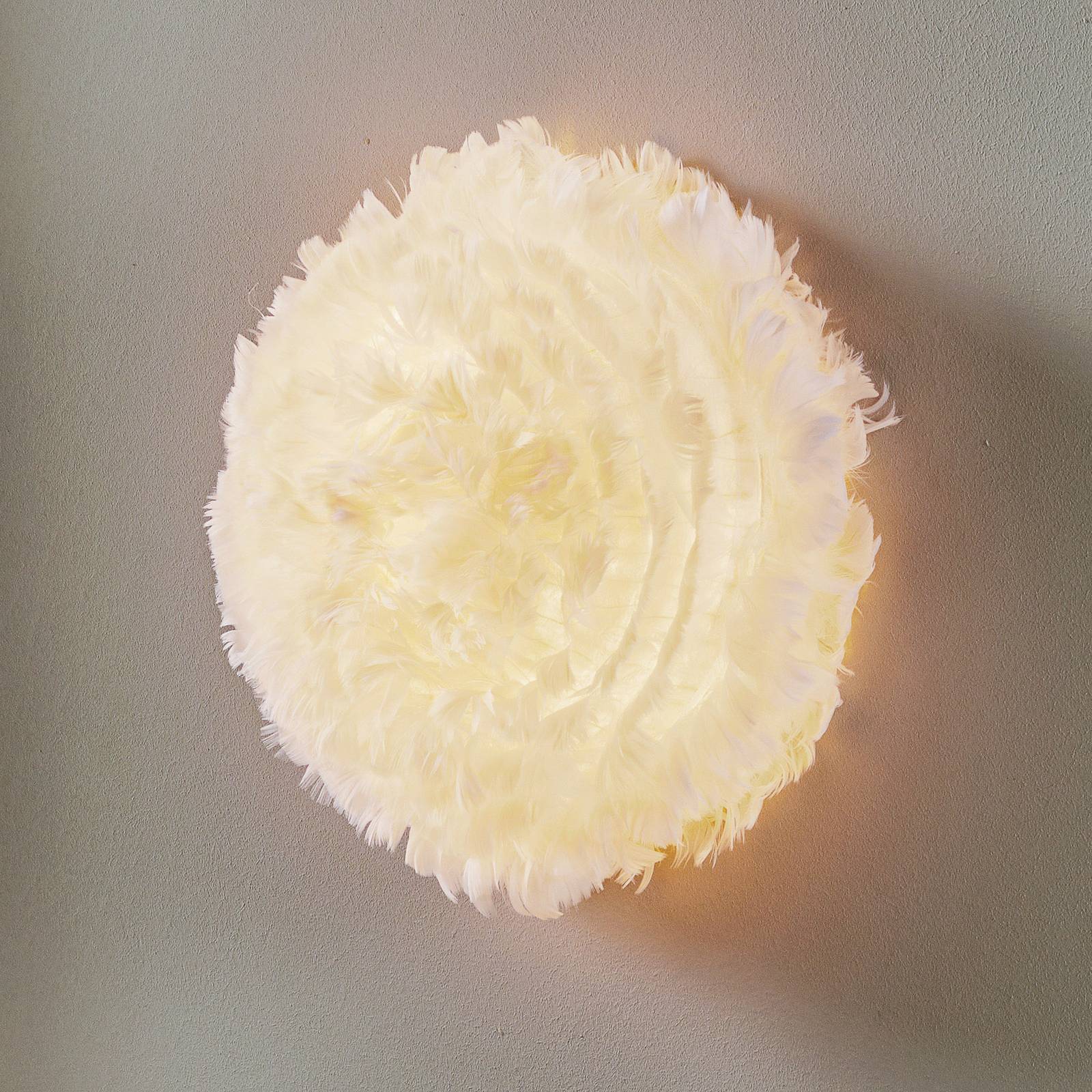 Dekoratívne nástenné svietidlo Eos Up mini v bielej farbe pre teplé a nepriame svetlo Svietidlo Eos Up od dánskeho výrobcu UMAGE je vyrobené zo skutočného peria. Svojou prirodzenosťou a jemnosťou zaisťujú obzvlášť dekoratívny vzhľad a veľmi príjemnú atmosféru osvetlenia. Mini nástenné svietidlo Eos Up je špeciálnym pútačom pozornosti, najmä pre spálne, obývacie izby alebo detské izby. Nepoužívajú sa tu perá zo živých zvierat. Poznámka: Ak sa dáždnik zapráši, jednoducho ho očistite sušičom vlasov. Dánsky výrobca UMAGE, ktorého spoluzakladateľom bol dizajnér mini závesnej žiarovky Eos Up, sa špecializoval na ďalší vývoj škandinávskeho dizajnu. Ponúka svetlá, pri výrobe ktorých zohráva úlohu aj udržateľnosť materiálov.