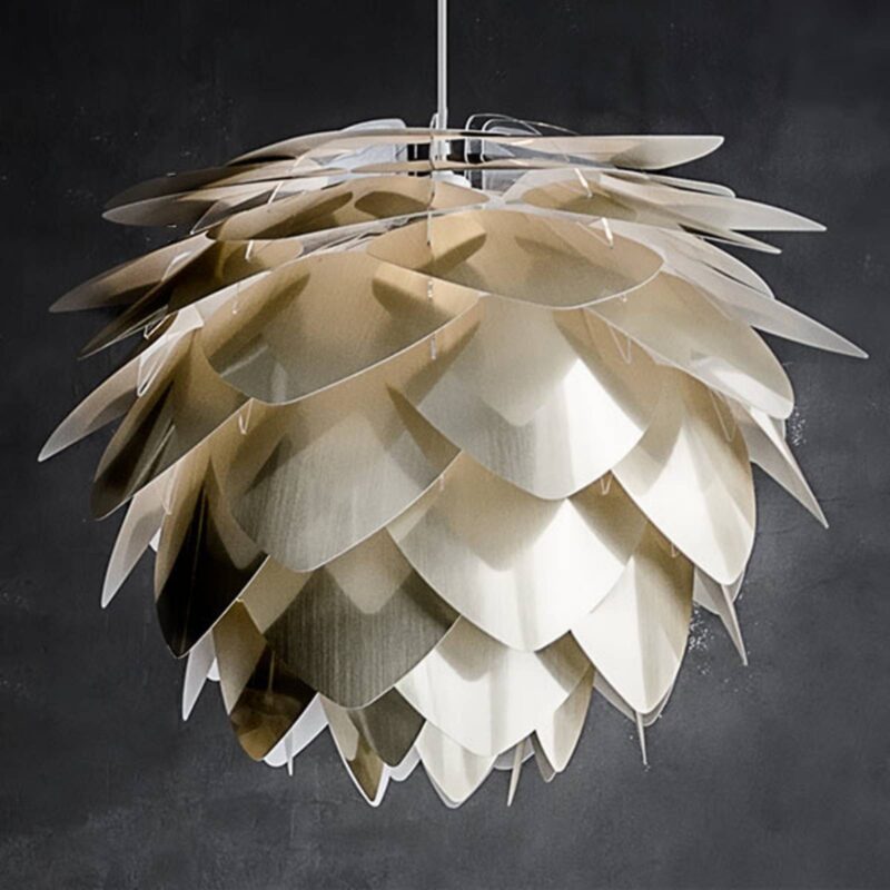 Fascinujúco navrhnuté závesné svetlo Silvia medium – mosadz kefovaná Závesné svetlo Silvia medium vyžaruje vďaka povrchovej úprave kefovanej mosadze teplý lesk už v neosvetlenom stave. Keď sa svetlo zapne, tento atraktívny účinok sa ešte zvýši. Potom svetlo svieti nielen nahor a nadol, ale preniká aj cez malé medzery medzi prvkami v tvare listov, ktoré tvoria tienidlo. Vo všeobecnosti vyzerá tienidlo ako exotické ovocie, čo je dosť na to, aby ste snívali o teple a svetle. Pri lampe Silvia to však nie je sen: Jej svetelný efekt je jednoducho fantastický a vytvára veľmi útulnú atmosféru v miestnosti, či už sa používa ako hlavné osvetlenie alebo na osvetlenie určitej oblasti. Hlavným cieľom spoločnosti UMAGE z Dánska, vyrábajúcej osvetlenie, je moderným spôsobom ďalej rozvíjať škandinávsky dizajn. To sa darí prostredníctvom atraktívnych svietidiel, ktoré bodujú čistou krásou a funkčnosťou, pričom sa pri výrobe kladie veľký dôraz aj na aspekty ochrany životného prostredia a udžateľnosť výsledných produktov.