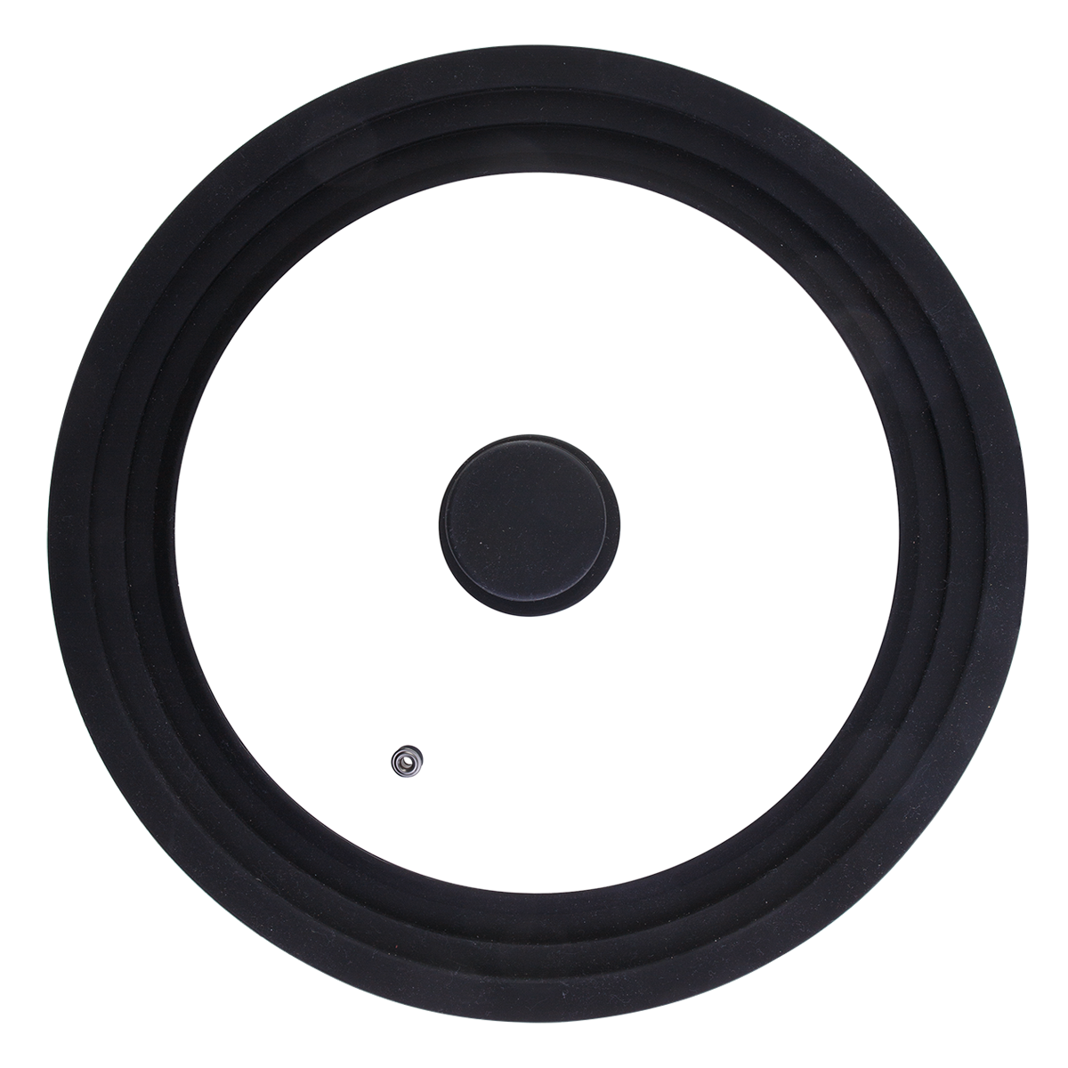Silikónový okraj pre Ø 26, 28, 30 cm Univerzálna pokrievka s parným ventilom a silikónovým okrajom sa prispôsobí hrncom a panviciam s horným priemerom Ø 26, 28 a 30 cm. – materiál: silikón / sklo – teplotná odolnosť: od – 40°C do + 230°C – vhodná do plynovej, elektrickej, teplovzdušnej aj mikrovlnnej rúry