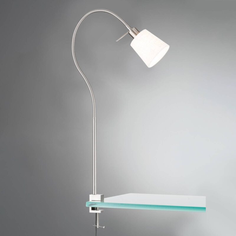 Upínacia lampa Jam, tienidlo z látky, nikel/biela