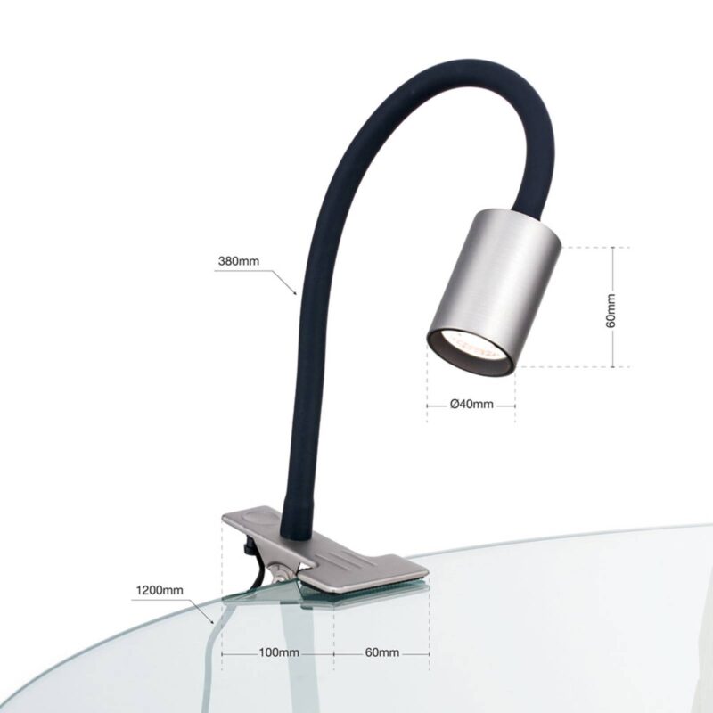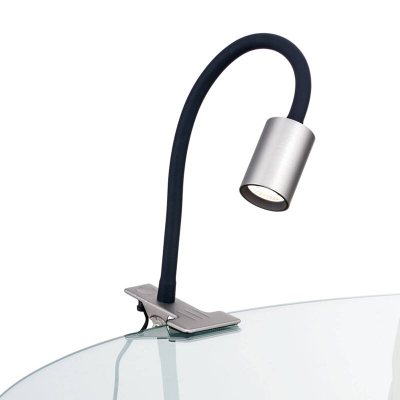 Praktické svietidlo Kurt LED s flexibilným ramenom Stolnú lampu Kurt LED možno vďaka svorke flexibilne používať na stole, v kuchyni alebo v hobby miestnosti, a to je len niekoľko miest. Poskytuje presné svetlo, ktoré sa dá ľahko prispôsobiť individuálnym požiadavkám pomocou flexibilného ramena. Matná farba hlavy svietidla a svorky kontrastuje s flexibilným čiernym krkom svietidla. Svietidlo Kurt má uhol vyžarovania 36°. Svetlo má vypínač na 120 cm dlhom prívodnom kábli a svorka svietidla sa dá otvoriť až o 3 cm.