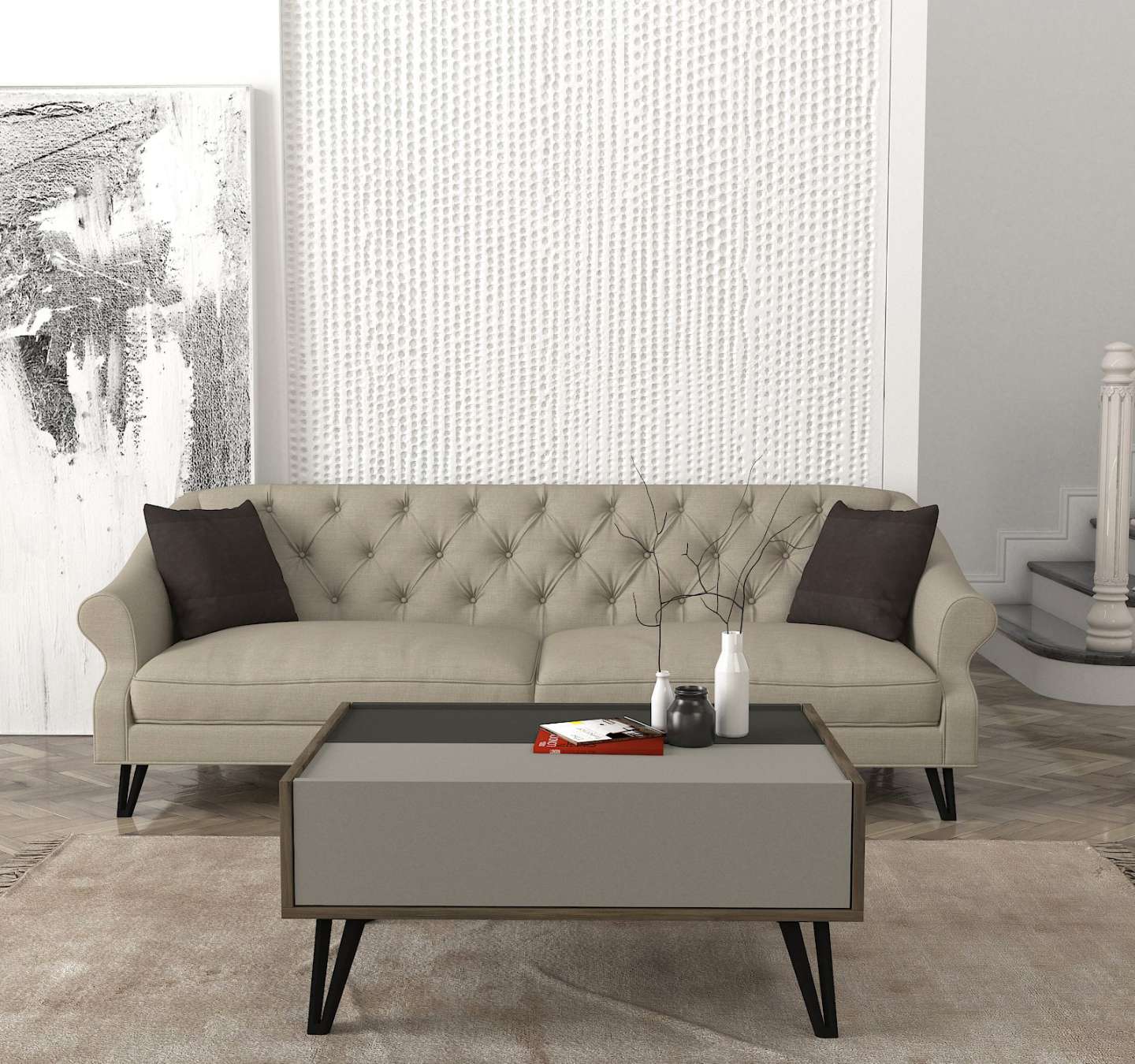 Predstavujeme URGES, konferenčný stolík, ktorý prináša do vašej obývačky moderný a funkčný dizajn. Tento štýlový nábytok v kombinácii šedej, hnedej a antracitovej farby je navrhnutý tak, aby poskytoval praktické a estetické riešenie pre vaše potreby.Detailné špecifikácieTyp tovaru: Konferenčný stolíkMateriál: Kvalitná LTD s hrúbkou materiálu 18 mm, zaisťujúca odolnosť a dlhú životnosť.Rozmery: 90 x 41.8 x 60 cm, ideálny pre moderné obývacie priestory.Farba: Elegantná kombinácia šedej, hnedej a antracitovej, ktorá dodáva priestoru moderný a príjemný vzhľad.Funkcie: Úložný priestor na organizáciu vašich vecí.Vybavenie: Skrinka poskytujúca dostatok úložného priestoru pre knihy, časopisy alebo dekorácie.Tvar: Obdĺžnikový, ktorý dodáva moderný a čistý vzhľad.Dodatočné informácie: Produkt je dodávaný v demontovanom stave, čo uľahčuje transport a montáž.Konferenčný stolík URGES je ideálnou voľbou pre tých, ktorí hľadajú moderný a funkčný nábytok s dostatočným úložným priestorom. Jeho kombinácia šedej, hnedej a antracitovej farby a minimalistický dizajn prinášajú do vášho domova sviežosť a moderný štýl, zatiaľ čo poskytujú dostatok úložného priestoru pre všetky vaše potreby.