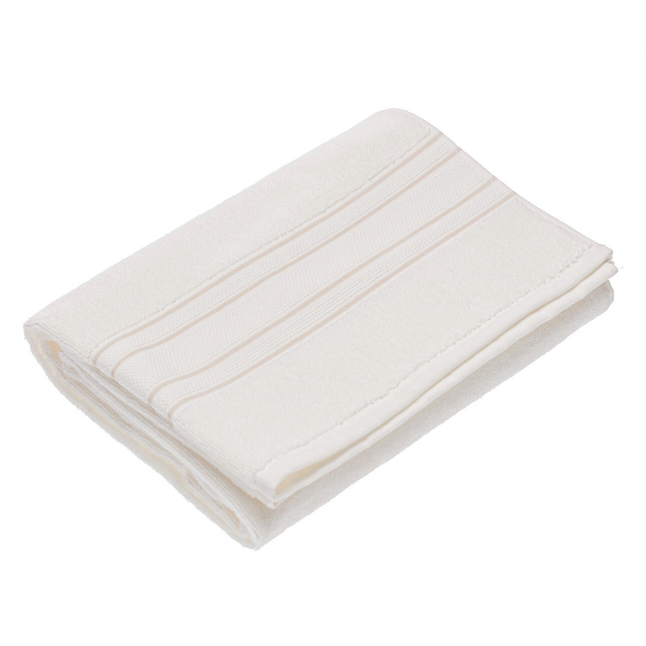 Bavlnená kúpeľňová osuška s ozdobným béžovým lemom.