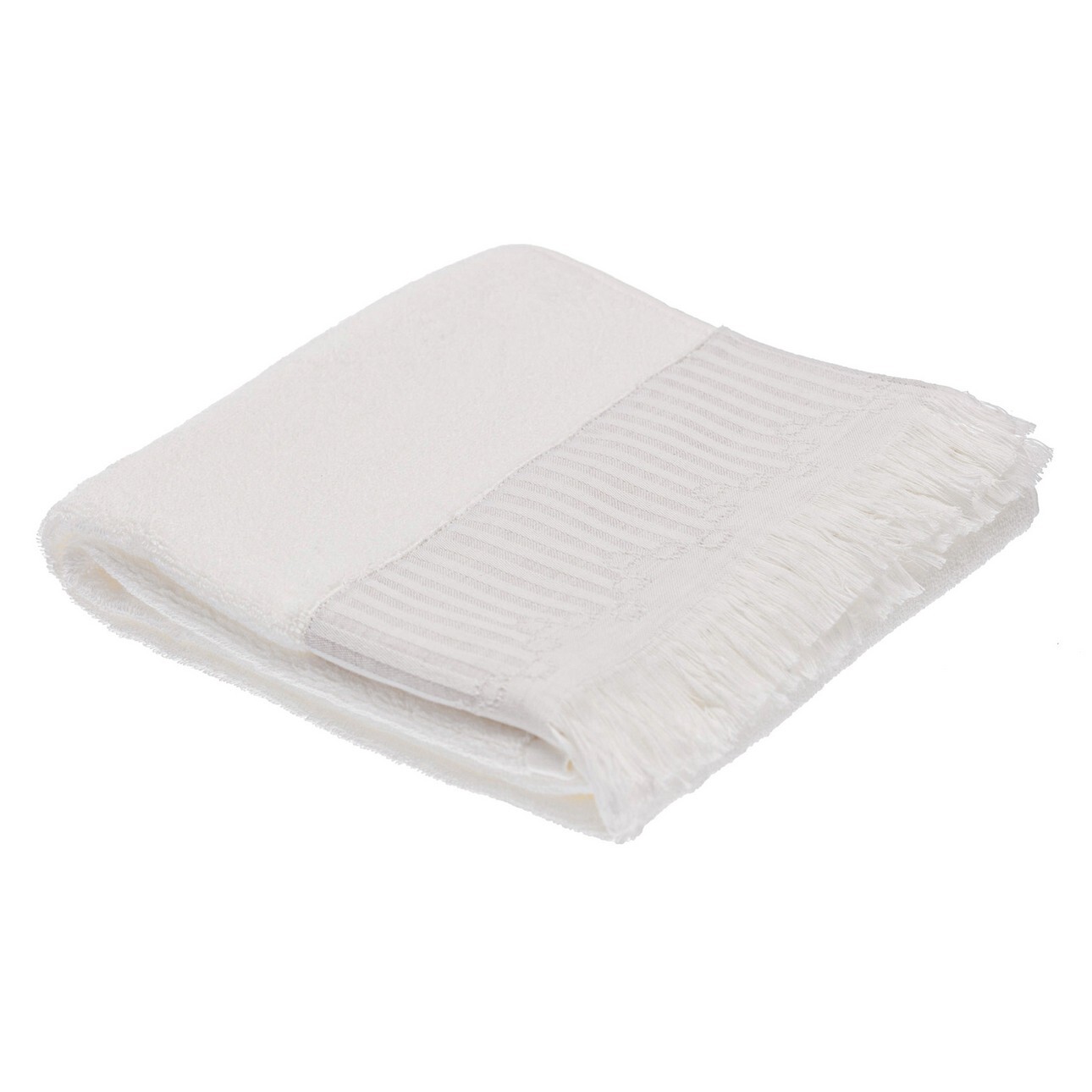 Bavlnený uterák so sivými okrajmi a strapcami.