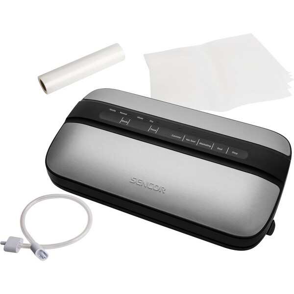 S vákuovou baličkou značky Sencor ľahko uchováte potraviny čerstvé a kvalitné. Až päťnásobne predĺžite ich trvanlivosť a pritom sú zachované všetky nutričné hodnoty aj pôvodná aróma čerstvých potravín. Potraviny v sáčku možno ohrievať a rozmrazovať. Vákuové balenie zabraňuje vysušovaniu/odvodňovaniu potravín.Vlastnosti a špecifikácie: