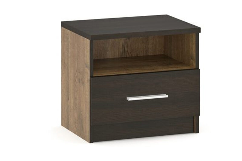 Moderný spálňový nábytok VALENTÍNA poskytne to pravé útočisko od všedných povinností a starostí. Svojou farebnou kombináciou dub april s tmavým kontrastom wenge, zabezpečí nadčasovosť a štýlovosť. Sektor zahŕňa dostatok komponentov, vďaka ktorým si vytvoríte výnimočnú spálňu plnú pohodlia.Súčasťou spálne je set dvoch nočných stolíkov VALENTÍNA. Stolíky sú vyrobené z veľmi kvalitnej LTD dosky, ktorá sa ľahko udržiava. Stolíky majú jeden šuplík a otvorenú policu. Šuplík je ozvláštnený o elegantnú úchytku striebornej farby. Farba stolíkov je dub april/wenge.Rozmery:- šírka: 50,2 cm,- výška: 45,6 cm,- hĺbka: 37,2 cm.Dodávame v demonte, pričom montáž je veľmi jednoduchá.