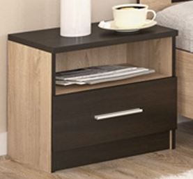 Moderný spálňový nábytok VALENTÍNA poskytne to pravé útočisko od všedných povinností a starostí. Svojou sviežou farebnou kombináciou dub sonoma s tmavým kontrastom wenge, zabezpečí nadčasovosť a štýlovosť. Sektor zahŕňa dostatok komponentov, vďaka ktorým si vytvoríte výnimočnú spálňu plnú pohodlia.Súčasťou spálne je set dvoch nočných stolíkov VALENTÍNA. Stolíky sú vyrobené z veľmi kvalitnej LTD dosky, ktorá sa ľahko udržiava. Majú jeden šuplík a otvorenú policu. Šuplík je ozvláštnený o elegantnú úchytku striebornej farby. Farba stolíkov je sonoma/wenge.Rozmery:- šírka: 50,2 cm,- výška: 45,6 cm,- hĺbka: 37,2 cm.Dodávame v demonte, pričom montáž je veľmi jednoduchá.