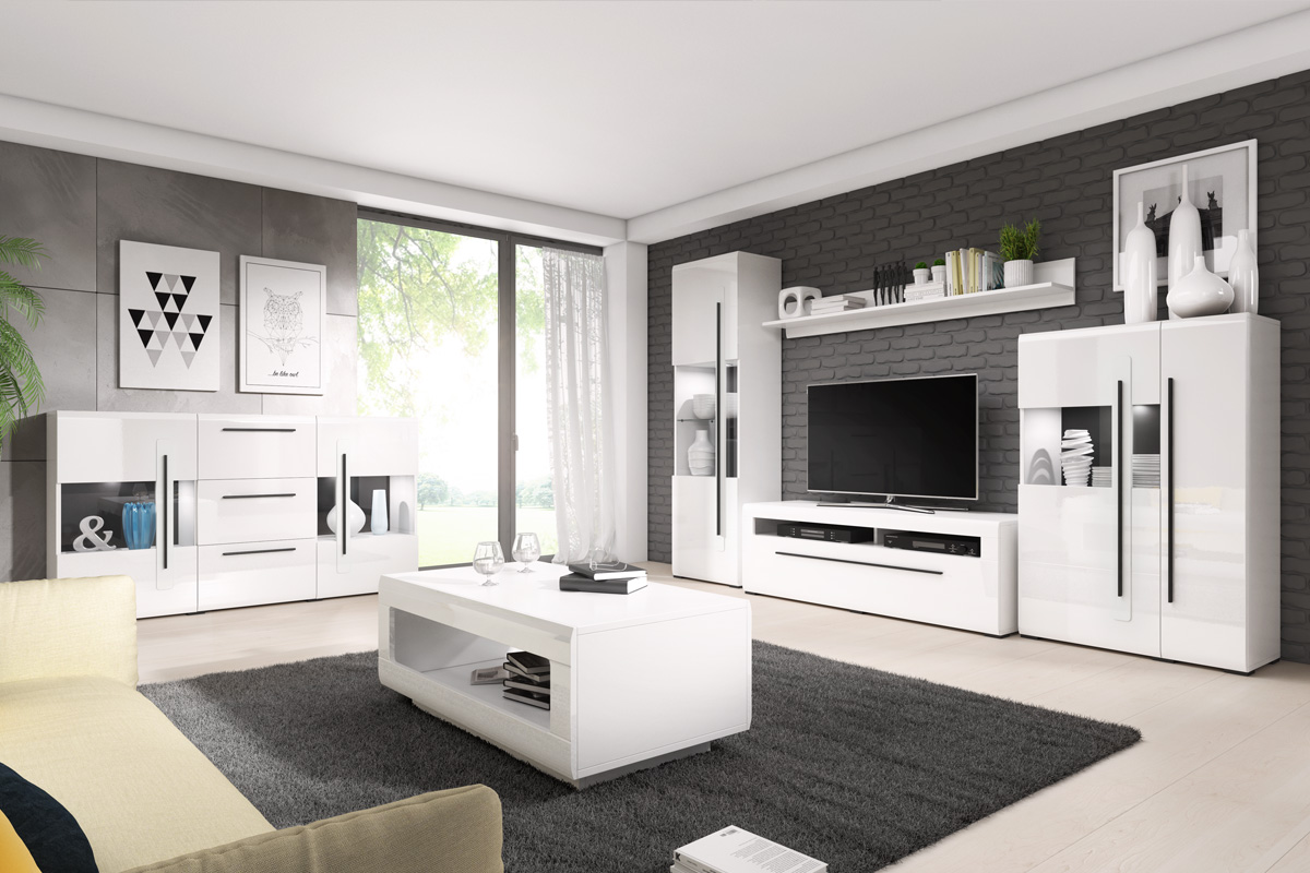Domovská stránka » Katalóg » VALICIA veľká obývacia zostava, biely lesk