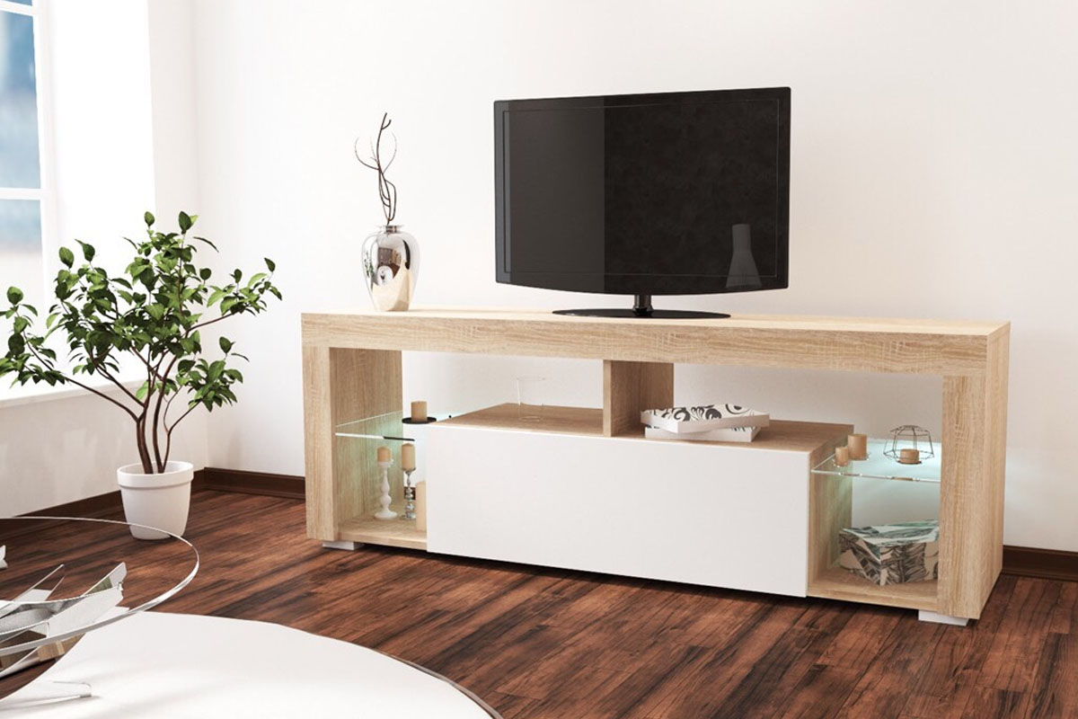 VEGAS samostatný TV stolík, dub sonoma/biely lesk