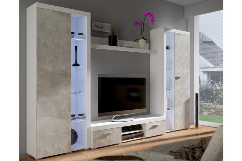 Obývacia stena BRUMA XL zaujme aj náročnejších užívateľov. Je v dizajnovom a modernom prevedení. Je vyrobená z kvalitných LTD dosiek, ktoré sa ľahko udržiavajú.Je vo farebnom prevedení biela. Rozmery obývacej steny (š,v,h): 300 x 190 x 40.3 cm. V obývacej zostave sa nachádzajú nasledujúce prvky:- 2 x vysoká vitrína – rozmery (š,v,h): 75 x 190 x 33,8 cm- RTV skrinka – rozmery (š,v,h): 150 x 31,50 x 40,2 cm- polica – rozmery (š,v,h): 140 x 16 x 17,6 cm.Obývaciu stenu BRUMA je možné zakúpiť len ako celok. LED osvetlenie nie je v cene. Je možné si ho dokúpiť.Dodávame v demonte.