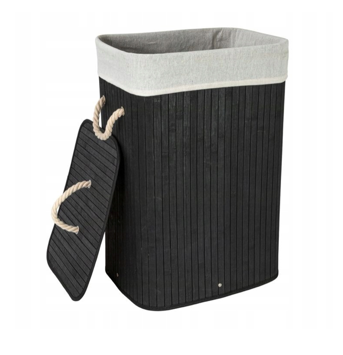 Veľký bambusový kôš na prádlo s vekom 72L čierna