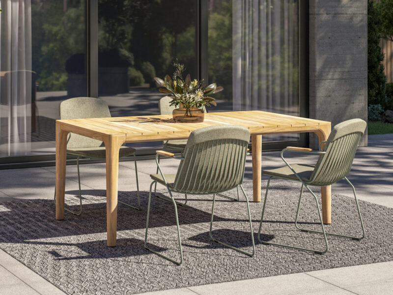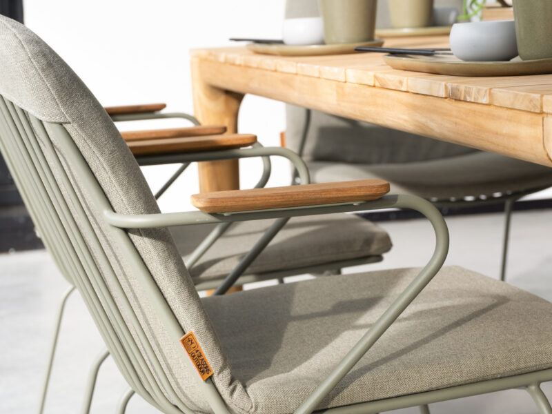 Nadčasová stolová súprava Veneto pre 4 osoby z kombinácie prírodných materiálov a nehrdzavejúcej ocele v decentných farbách od značky 4 Seasons Outdoor.