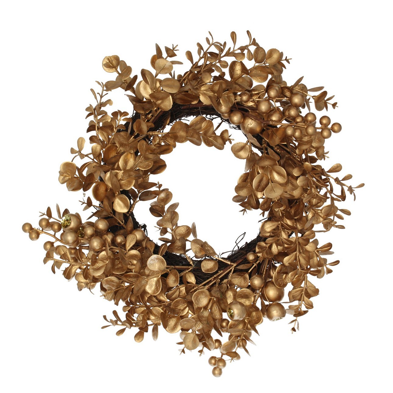 Dekoratívny veniec v starožitnej zlatej farbe.