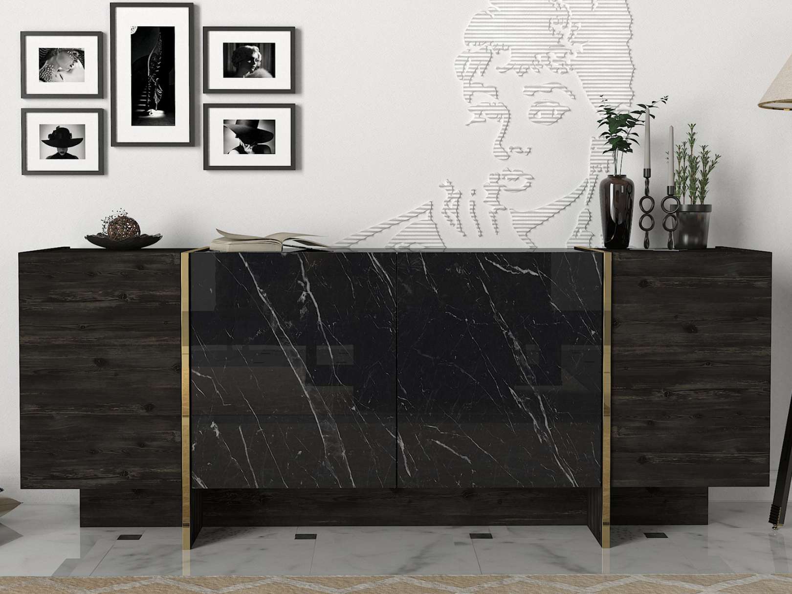 Domovská stránka » Katalóg » VERONA široká komoda, rehab/čierny mramor
