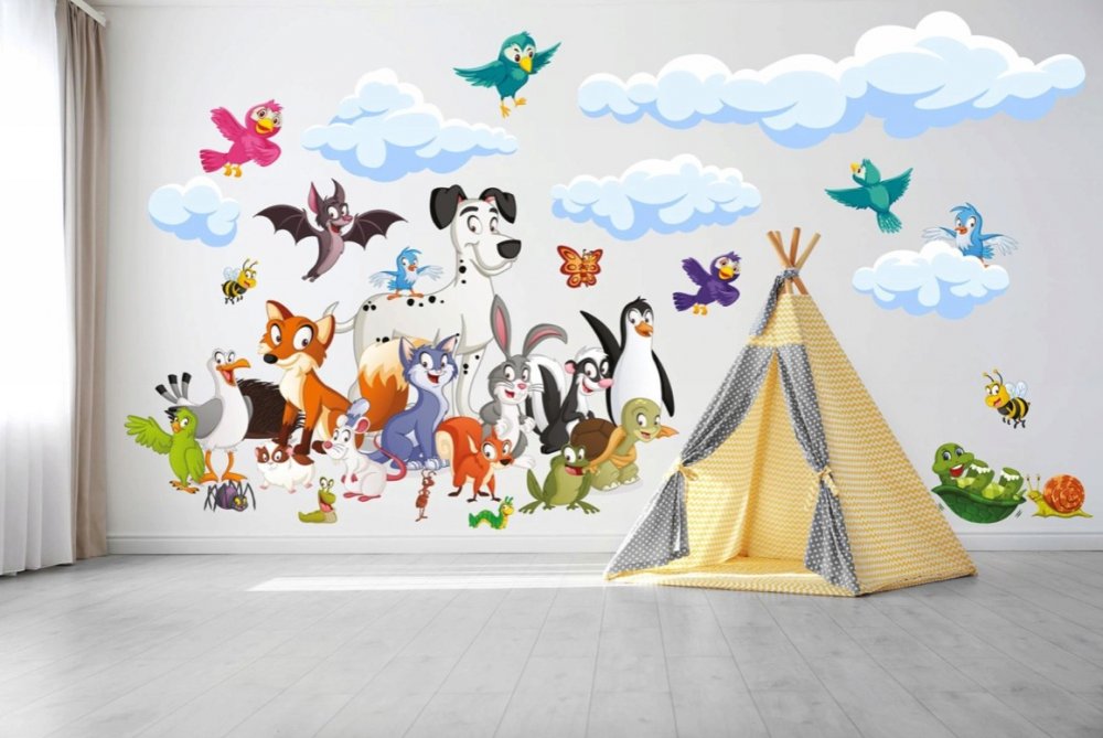 Veselá detská nálepka na stenu zvieratká 60 x 120 cm