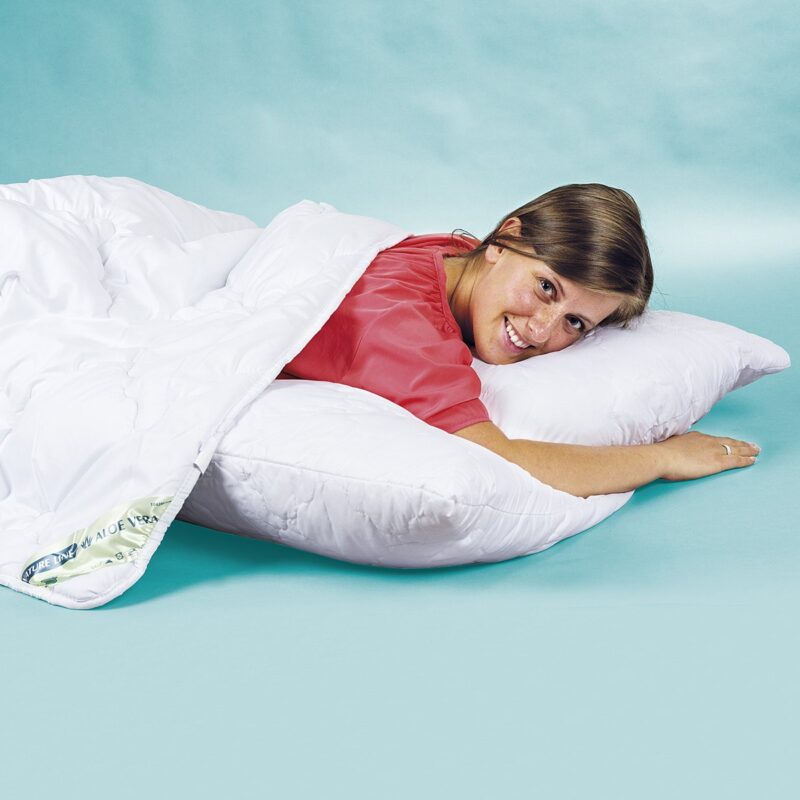 Set prikrývky a vankúša Natur Line – Aloe Vera je ošetrený extraktom z Aloe Vera, ktorý má blahodarné účinky na ľudský organizmus. Prispieva k relaxácii a upokojeniu. Vďaka úprave z Aloe Vera sa budete cítiť príjemne a zdravo. Naviac vankúš má praktický zips a môžete si tak regulovať množstvo výplne. Odporúčame prať a nesušiť v bubnovej sušičke.Gramáž vankúše: 900 gGramáž prikrývky: 1100 g