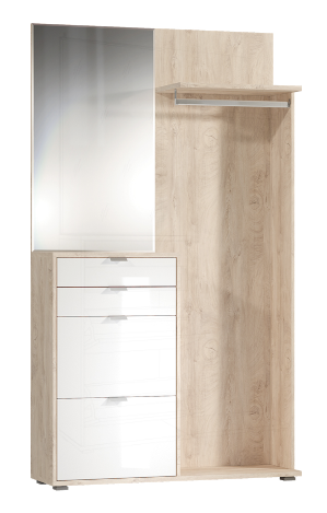 Moderná predsieňová zostava VEXO v trendovom farebnom prevedení zaujme nejedného návštevníka. Je vyrobená z kvalitnej LTD dosky, ktorá sa ľahko udržuje. Zostava je vzhľadom na svoje rozmery vhodná aj do menších predsiení, vo väčších priestoroch zase pôsobí vzdušne.Predsieň so zrkadlom obsahuje dve praktické zásuvky na drobnosti, vešiakovú tyč nad ktorou je polica a dve výklopné priehradky na obuv.Je vyrobená v modernom farebnom prevedení dub Endrgrain elegant v kombinácii s bielym leskom.Rozmer predsiene: š/v/h: 120/210/35,4 cm. Dodávame v demontovanom stave.