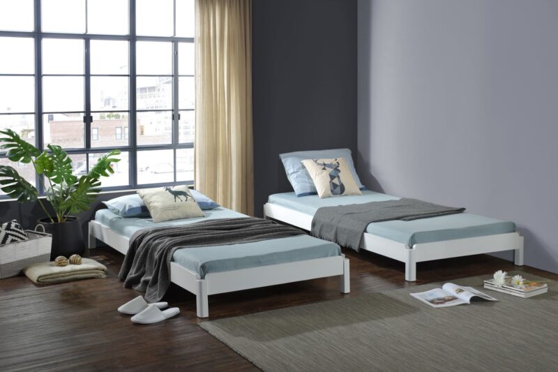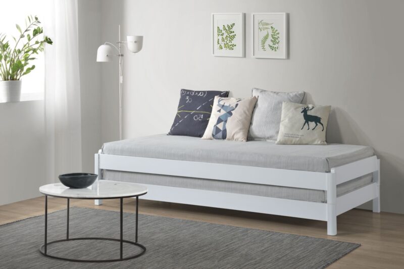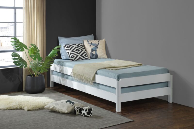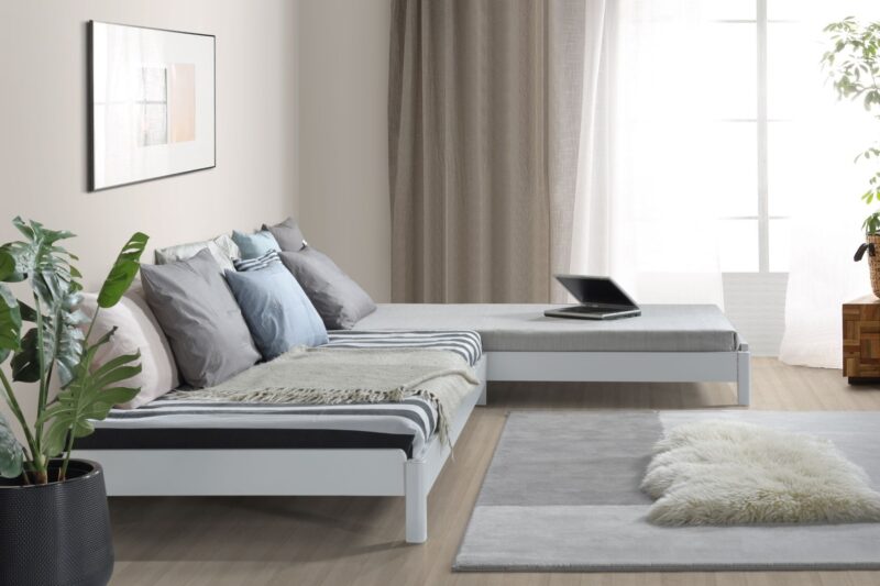 Pevná biela drevená posteľ PUZZLE ideálna pre hostí. Minimalistický dizajn vhodný do každého interiéru spálne, pre dospelých aj deti. Multifunkčný dizajn 3v1. Posteľ pre hostí, ktorá šetrí miesto – Posteľ pre hostí je vďaka svojmu dizajnu perfektným riešením šetriacim priestor, ktoré musíte mať, keď hostíte hostí.Možnosť stohovania – využijete ako jednolôžko aj ako 2 samostatné posteleTúto stohovateľnú posteľ je možné umiestniť aj do rohovej sedacej časti (pozri obr.). To je ideálne pre relaxáciu s priateľmi a členmi rodiny.Masívne drevoRošt v ceneRozmery :š 95,6 / h 209 / v 23 cm priestor pod posteľou 11,5 cmvýška nôh 20 cmDodávame v demonte.