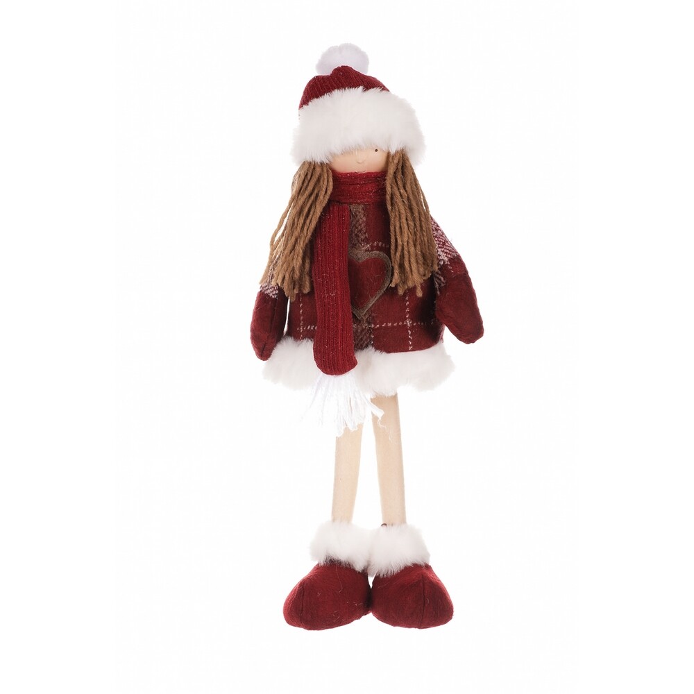 Táto pôvabná vianočná dekorácia látková bábika vnesie do vášho domova čaro sviatočnej pohody. Jej milý výraz, dlhé vlásky a hebký kabátik s decentným srdiečkom pôsobia hrejivo a prirodzene. Červený tón doplnený bielymi kožúškovými lemami vytvára typickú zimnú kombináciu, ktorá sa hodí do každého interiéru.Dievčatko je oblečené do elegantného kabátika so šálom a čiapkou s brmbolcom, čo jej dodáva osobitý charakter a jemný šarm. Výška 35 cm umožňuje jej umiestnenie na polici, komodu či pod vianočný stromček, kde krásne vynikne samostatne aj ako súčasť väčšej dekorácie.Vďaka kvalitnému látkovému prevedeniu je dekorácia príjemná na dotyk a odolná voči poškodeniu. Je ideálny nielen ako ozdoba, ale aj ako malý darček pre každého, kto má rád roztomilé vianočné motívy.Hlavné výhody produktu: