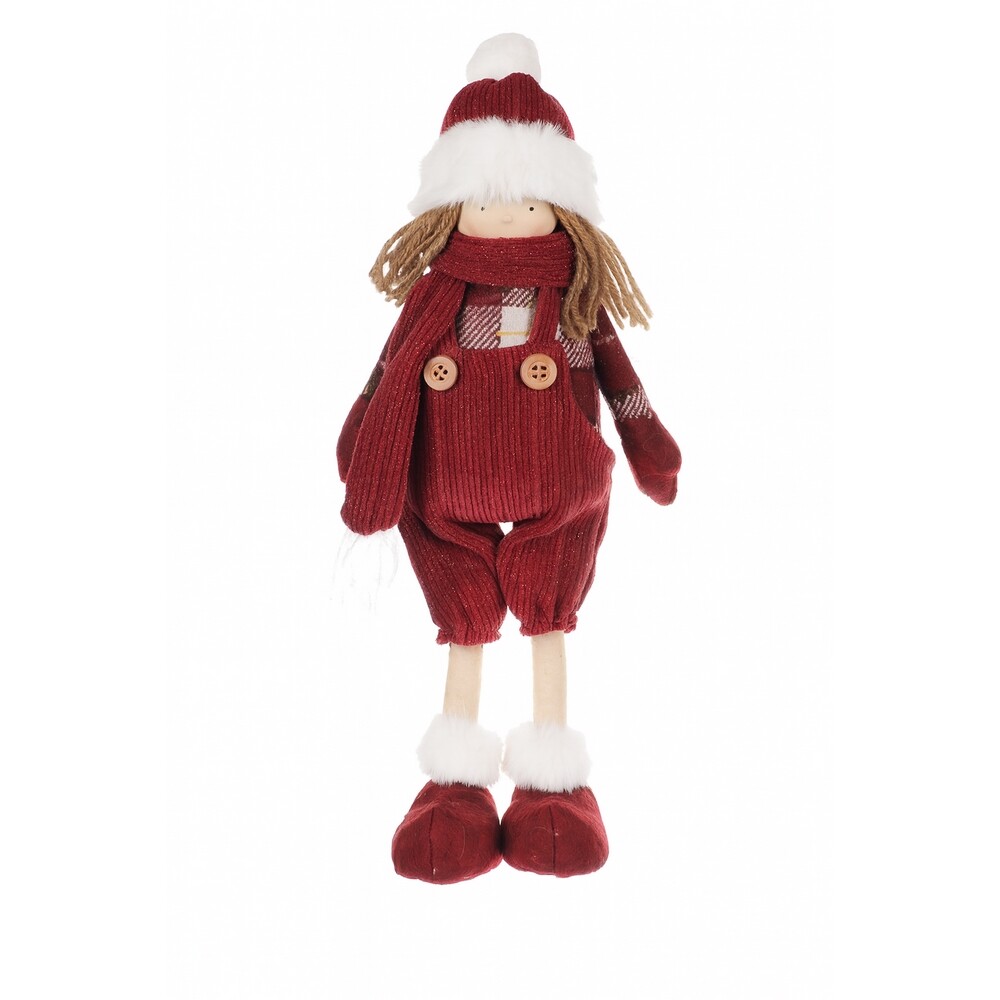 Táto roztomilá vianočná dekorácia prinesie do vášho domova čarovnú zimnú atmosféru. Vďaka svojmu jemnému výrazu a mäkkému spracovaniu pôsobí hrejivo a priateľsky, čím krásne doplní vianočnú výzdobu.Bábika je oblečená do červených lacláčov z príjemnej látky, doplnených čiapkou s brmbolcom, šálom a kožúškovými lemami. Detaily ako drevené gombíky alebo pruhovaný vzor na svetríku dodávajú dekorácii osobitý šarm.S výškou 35 cm sa skvele hodí na poličku, stôl alebo pod vianočný stromček.Táto bábika poteší nielen deti, ale aj dospelých, ktorí ocenia jej milý vzhľad a kvalitné spracovanie. V kombinácii s ďalšími látkovými figúrkami vytvorí útulnú sviatočnú scénu plnú radosti.Hlavné výhody produktu: