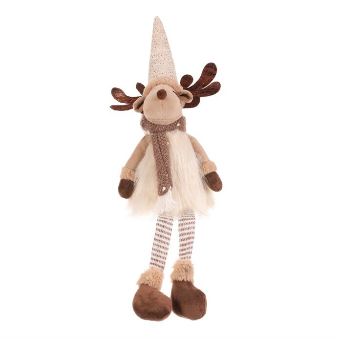 Vianočná dekorácia Sob visiace nohy, v. 54 cm, béžová/hnedá
