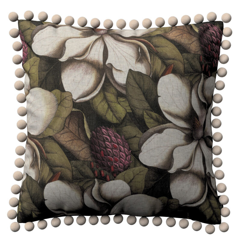 Viera s brmbolcami, béžový a zelený kvetinový motív, 45 x 45 cm, Eden, 144-24
