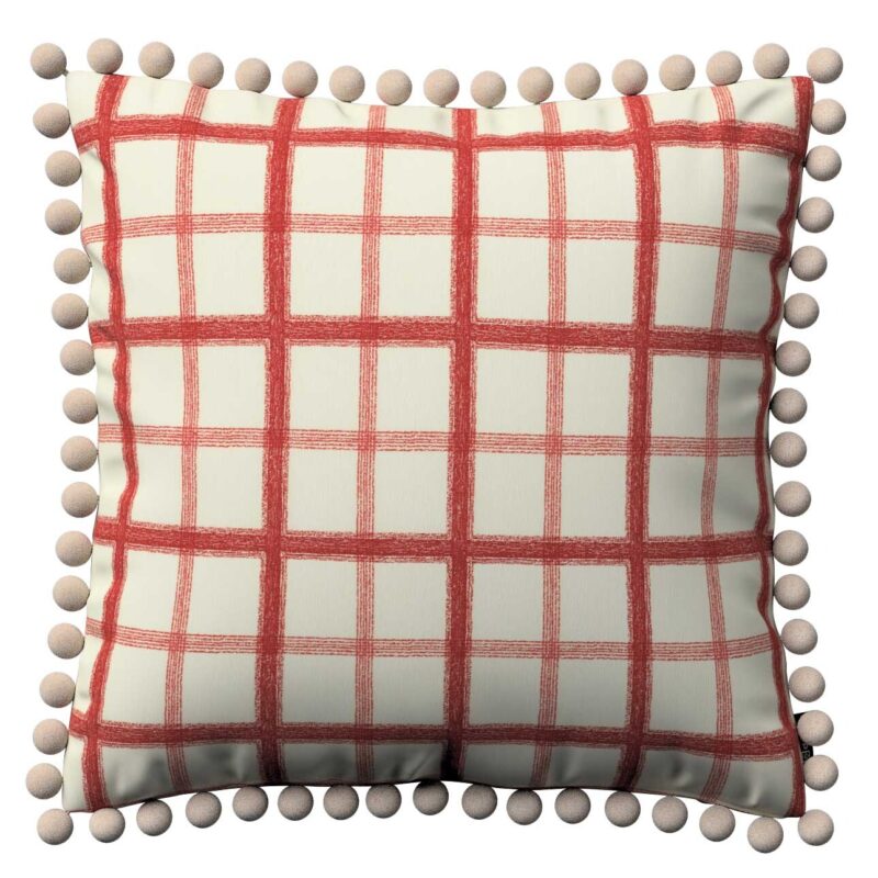 Viera s brmbolcami, bordové káro na svetlobéžovom podklade, 45 x 45 cm, Avinon, 131-15