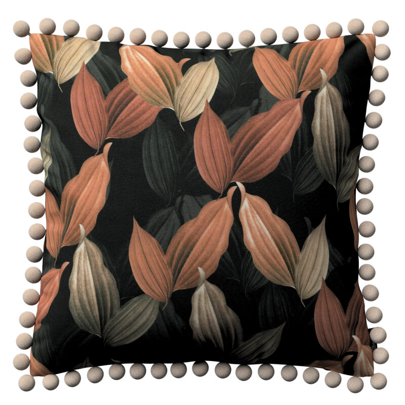 Viera s brmbolcami, borskyňovo – hnedé listy na čiernom pozadí, 45 x 45 cm, Abigail, 143-21