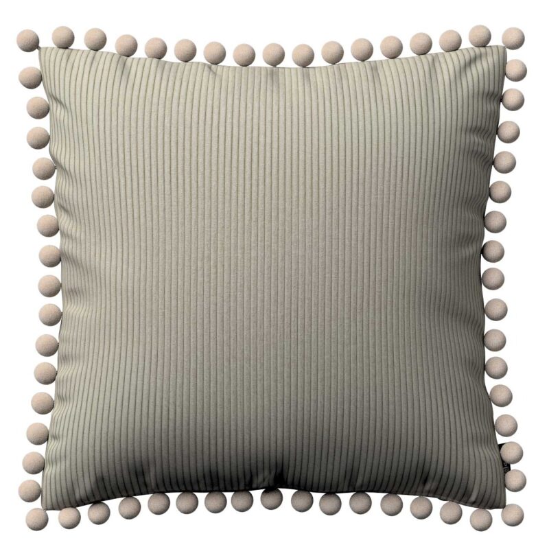 Viera s brmbolcami, ciepły szary sztruks, 45 x 45 cm, Manchester, 701-39