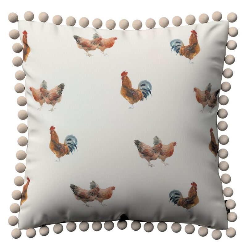 Viera s brmbolcami, hnedé kohúty na krémovom podklade, 45 x 45 cm, Flowers, 141-80