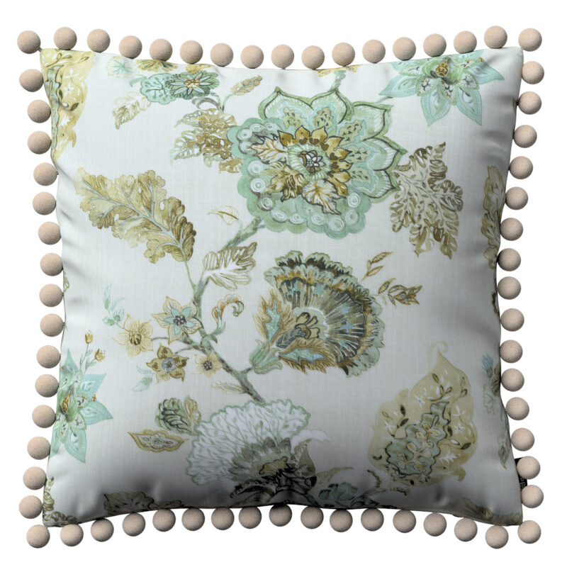 Viera s brmbolcami, kvety na béžovo – sivom podklade, 45 x 45 cm, Flowers, 143-67