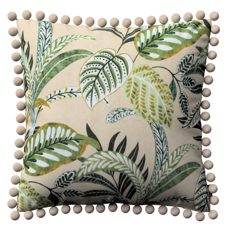 Viera s brmbolcami, olivovozelené kvety na ľanovom podklade, 45 x 45 cm, Tropical Island, 142-96